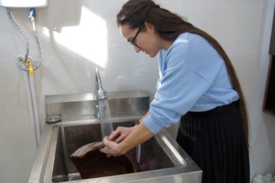 Վերականգնող Աստղիկ Սիմոնյանը հերթով, կարգով դարերի փոշին լվանում, մաքրում, չորացնում է։