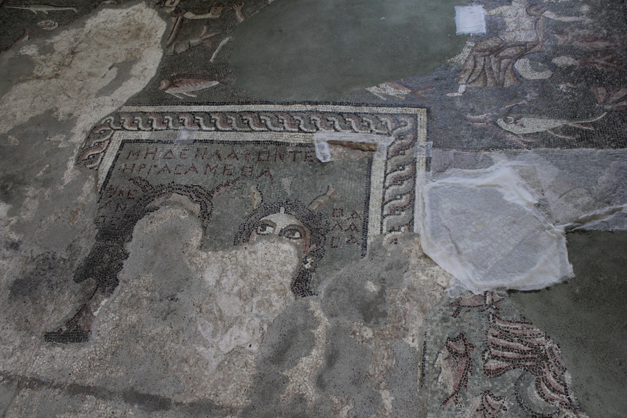 Լավագույն մասնագետներն իրականացրել են խճանկարի չոր և թաց մաքրում, ինչպես նաև որոշ վնասված հատվածների ամրակայում հատուկ նյութերով։ Խճանկարի առավել վնասված հատվածներ ամրակայվել են բամբակյա գործվածքով՝ մինչ աշխատանքների երրորդ փուլի սկիզբ: Նախատեսվում է հաջորդ փուլն իրականացնել հոկտեմբերի երկրորդ կեսին՝ որոշ ուսումնասիրություններ կատարելուց հետո: