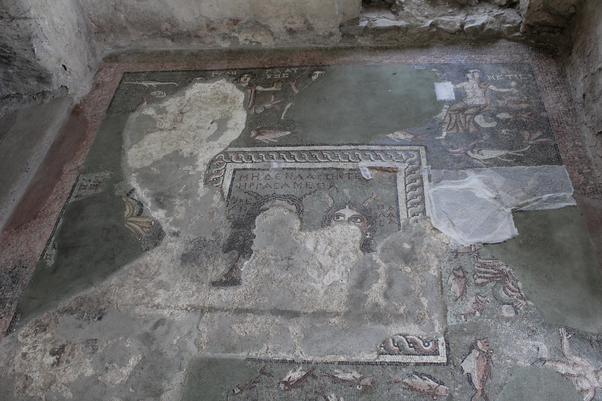 Լավագույն մասնագետներն իրականացրել են խճանկարի չոր և թաց մաքրում, ինչպես նաև որոշ վնասված հատվածների ամրակայում հատուկ նյութերով։ Խճանկարի առավել վնասված հատվածներ ամրակայվել են բամբակյա գործվածքով՝ մինչ աշխատանքների երրորդ փուլի սկիզբ: Նախատեսվում է հաջորդ փուլն իրականացնել հոկտեմբերի երկրորդ կեսին՝ որոշ ուսումնասիրություններ կատարելուց հետո: