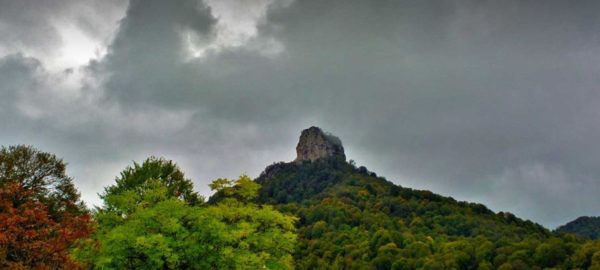 Լերկ, սպիտակավուն ապառաժը ասես հսկա քար է՝ մխրճված անտառի մեջ։
