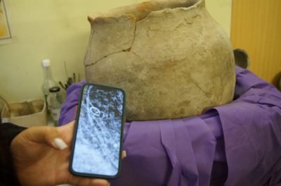 Կարասում մանկական թաղում է՝ ռենտգեն հետազոտությունը ցույց է տալիս, որ կմախքի տակ առկա են ականջօղեր ու մետաղական ուլունքներ։ Կարասի հետագա պեղումները կհաստատեն թաղման ճշգրիտ ժամանակաշրջանը։