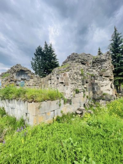 Միանավ բազիլիկ եկեղեցին, որ կառուցվել էր VI դ., իր սկզբնական կառուցվածով պահպանվել է մինչև XII դ. 20-ական թթ. և միայն դրանից հետո են իրականացվել վերականգնողական աշխատանքներ, ինչի մասին վկայում է խաչքարերից մեկի վրա եղած արձանագրությունը: Եկեղեցու մուտքը արևմուտքից է, պահպանվել է միայն խորանի գմբեթարդը: Երեսապատի սրբատաշ քարերի մեծ մասը թափված են: