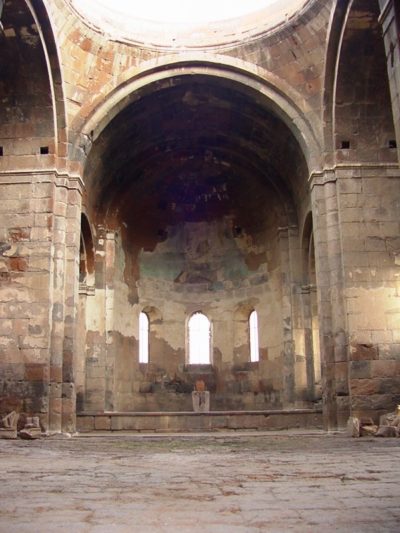 Հսկայածավալ, չափազանց լուսավոր ներքին տարածությունը որմնանկարներին հաղորդել է հանդիսավորություն և վեհություն: Երբեմնի հարուստ որմնանկարներից պահպանվել են որոշ հատվածներ, որոնք վկայում են VII դ. Ստեփանոս նկարչի կատարողական բարձր վարպետության մասին: