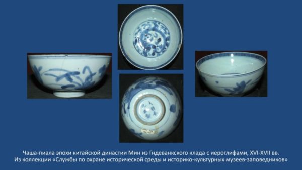 Զեկույցում ներկայացվել են Գնդեվանքի տարածքից 1981թ. հայտնաբերված և «Պատմամշակութային արգելոց-թանգարանների և պատմական միջավայրի պահպանության ծառայություն» ՊՈԱԿ-ի հնագիտության ֆոնդում պահվող չինական Մին հարստության /14-17-րդ դդ․/ ճենապակե առարկաներ և եկեղեցական սպասք։